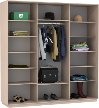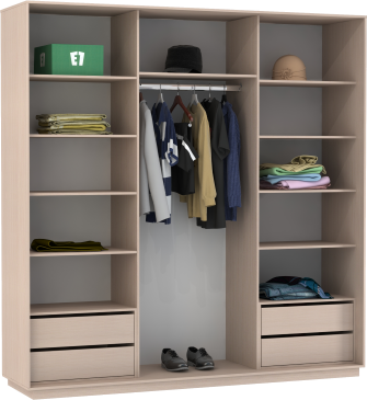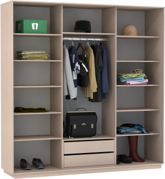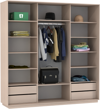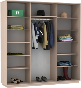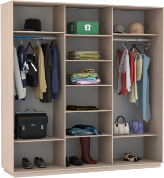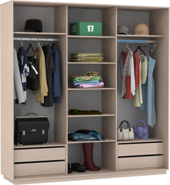 Чтобы сделать шкаф более вместительным и функциональным, его можно укомплектовать дополнительными полками, модулями с ящиками, кофрами или выдвижными корзинами. Эти аксессуары помогут Вам грамотно зонировать пространство внутри шкафа.