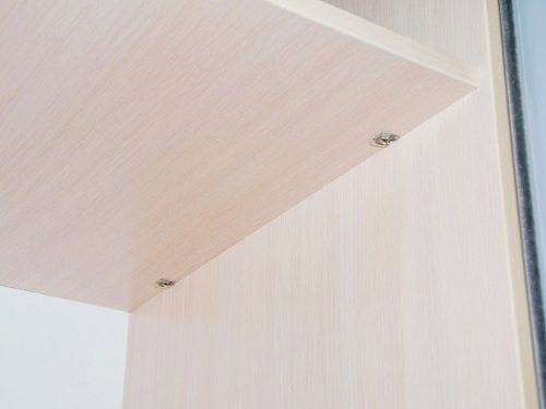 Благодаря металлическому стягивающему крепежу Hettich полки шкафа полностью обездвижены, не выскакивают из креплений, даже если по ним лазят дети!
