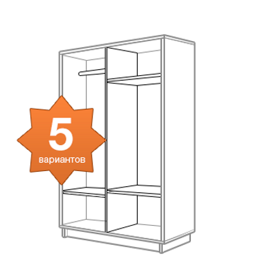 Самая экономичная линейка среди шкафов «Е1». Подойдет тем, кто ищет вместительный шкаф-купе без излишеств. Демократичная цена достигается благодаря стандартным параметрам шкафа: 1 вариант наполнения, 5 цветов корпуса: Белый снег, Венге, Дуб молочный, Ясень Шимо светлый, Ясень Шимо темный.
